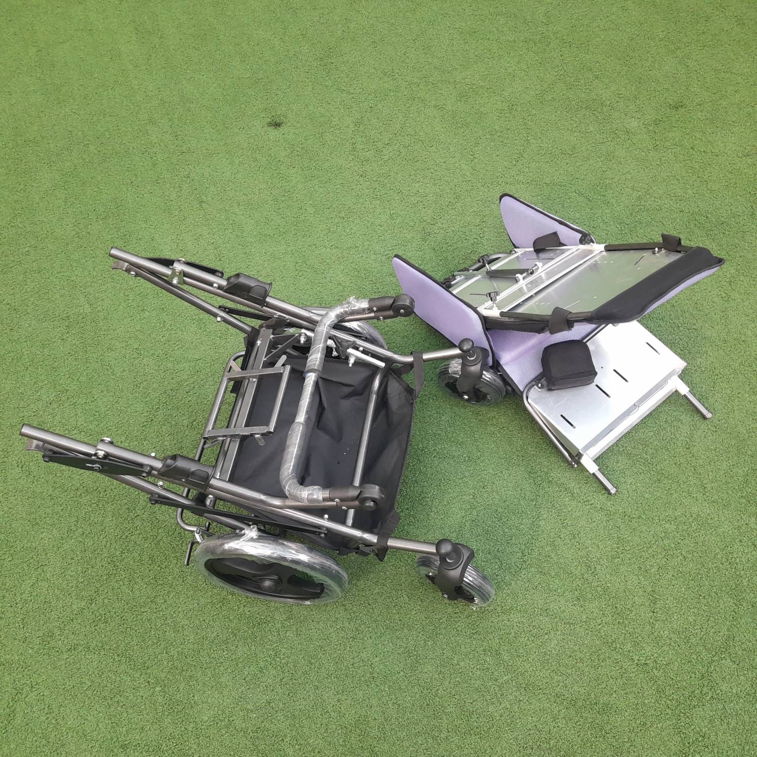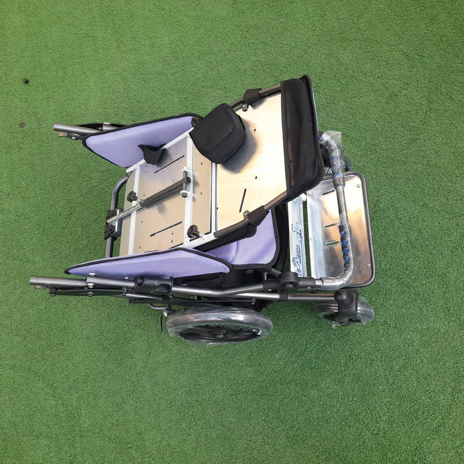کالسکه حمل کوآما تاشو میباشد/ جاپایی قابل تنظیم/ پشتی قابل تنظیم/ دارای جلیقه نگهدارنده/دارای ترمز روی چرخ های عقب ویلچر