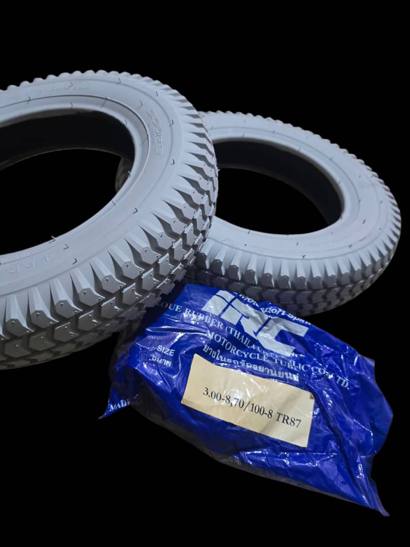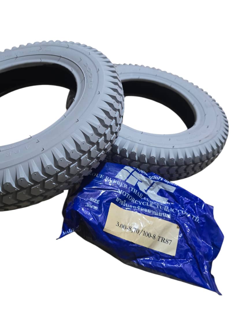لاستیک آجدار 8*300 چرخ جلو /تیوب سروالف کج 8*300