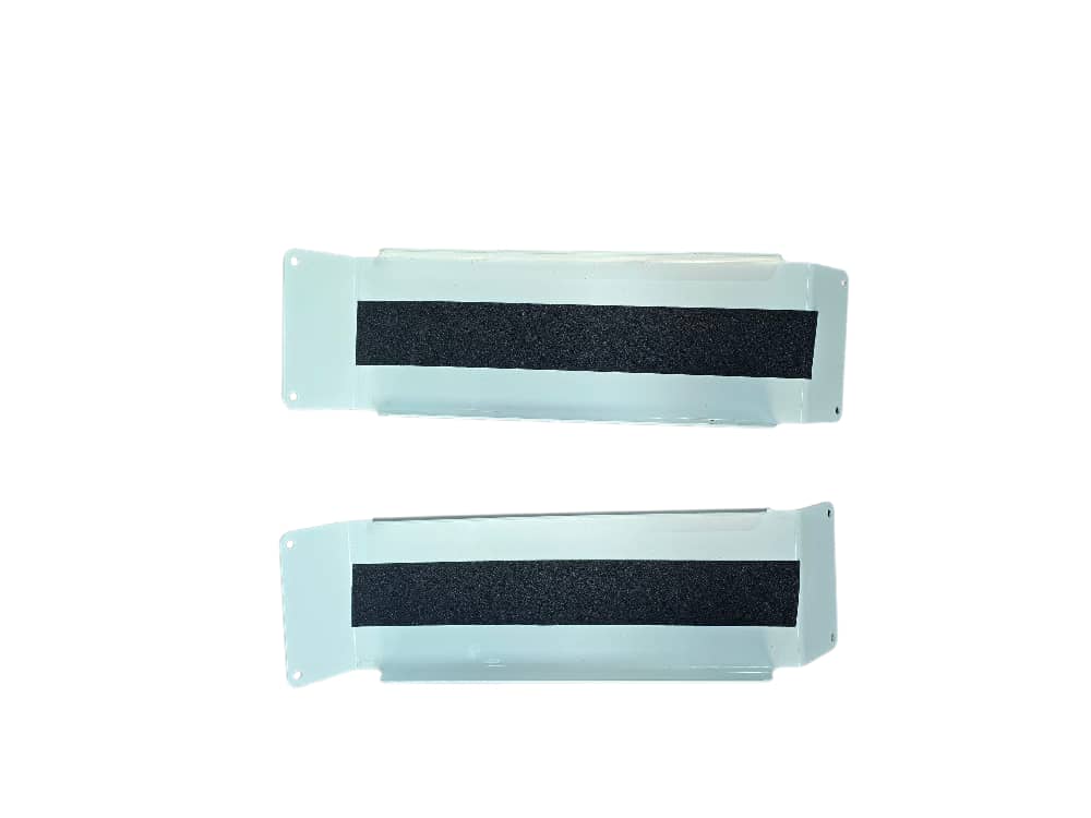 رمپ 75 متحرک ویلچر/طول رمپ 120 سانتمتر/عرض رمپ 14/5 سانتمتر/وزن رمپ 3.160 کیلوگرم/ضخامت ورق فلزی 3 میلیمتر/با پوشش رنگ کوره ای سفید/شیب لبه پایین و بالای رمپ 30 درجه/دارای لبه نگهدارنده با ارتفاع 2/5 سانت